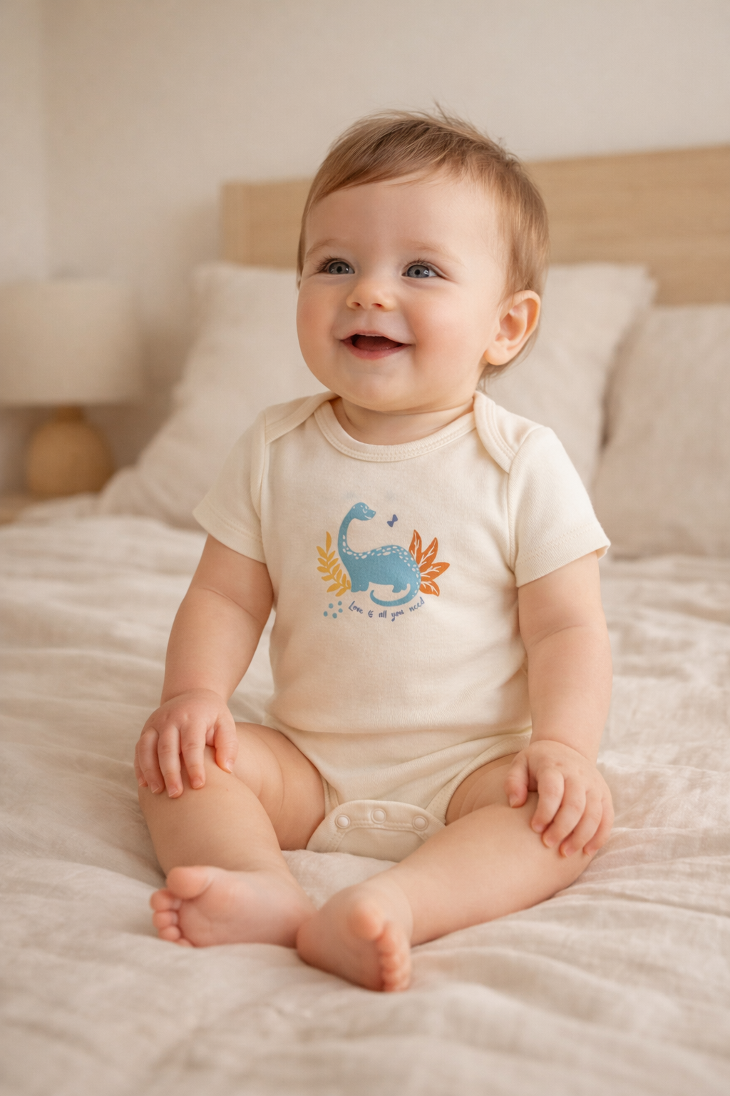 Lightweight and breathable, it helps babies stay comfortable across changing temperatures, making it ideal for both day and night wear. Finished with a playful Baby Dino print, it’s a timeless staple that’s as practical as it is joyful.