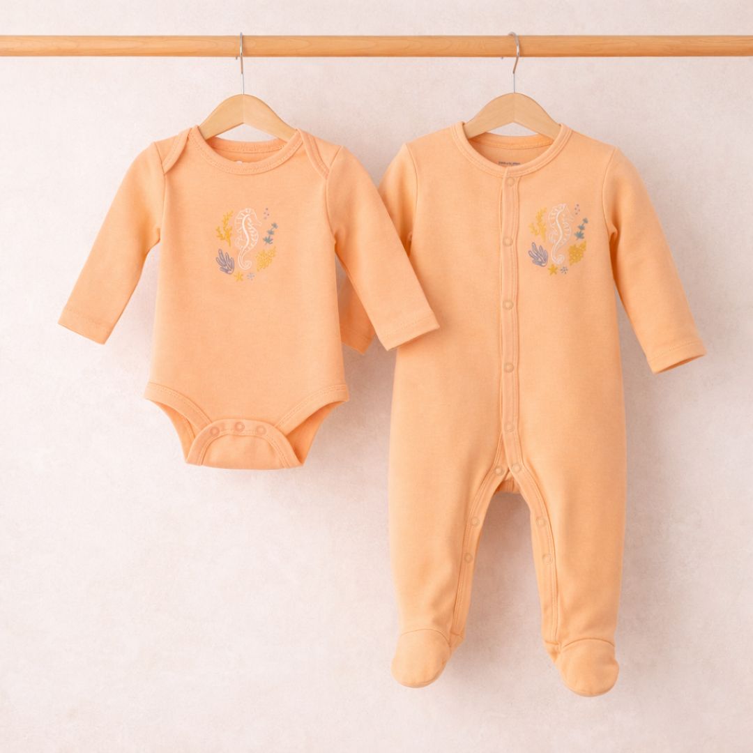 Organic Baby Long Sleeve Bodysuit & Sleepsuit Bundle | 0-6 M