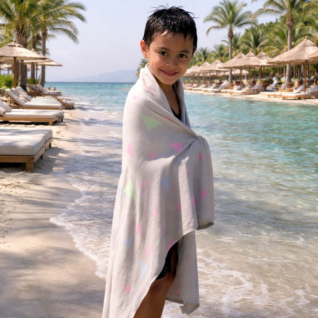 Generously sized and more absorbent than traditional cotton, it’s often used as a bath or swim towel as well as an everyday comforter. Lightweight yet durable, it’s ideal for home, travel, and moments when a familiar, soft layer makes all the difference.