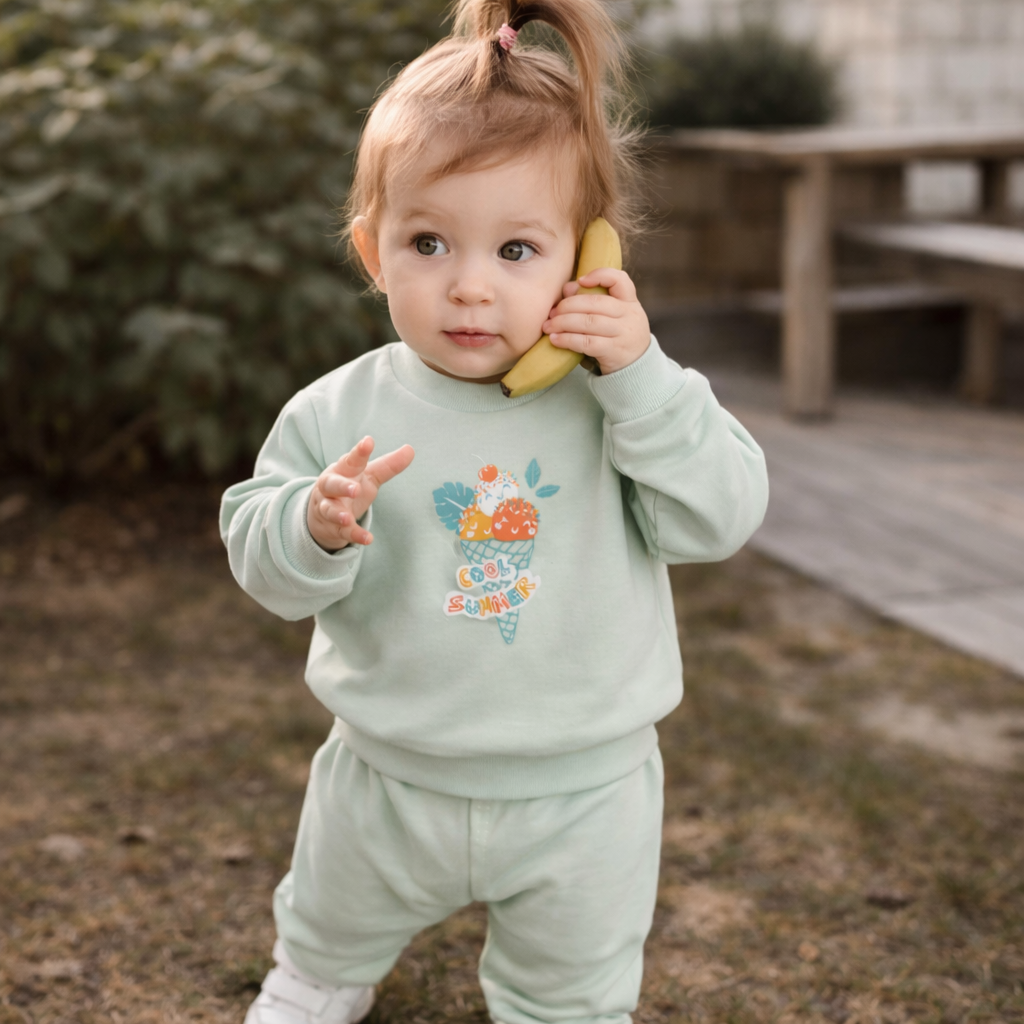 The Bebekish Ice Cream Organic Sweatshirt is made from our signature bamboo and organic cotton fabric, offering a soft, cosy, and breathable feel that’s gentle on sensitive baby skin.