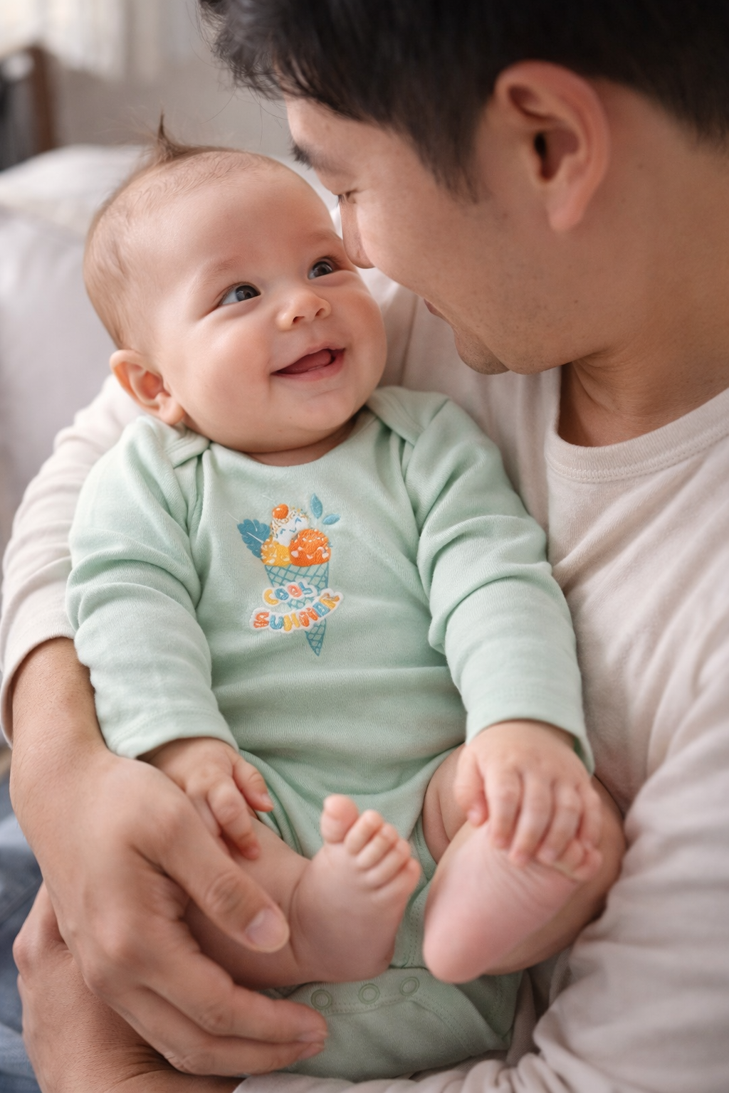 The soft mint green baby bodysuit features a playful ice cream print, adding a fun, summery feel while remaining practical for year-round wear. Naturally hypoallergenic, thermoregulating, and breathable, this bamboo baby bodysuit helps keep your baby cosy, cool, and comfortable throughout the day.