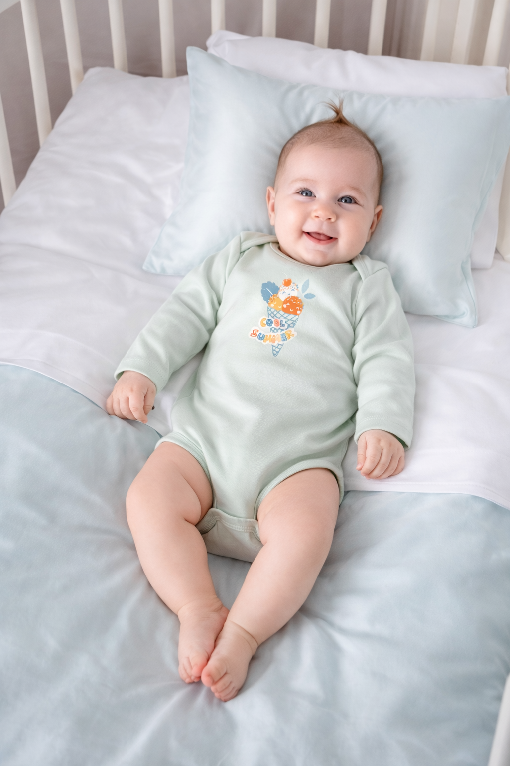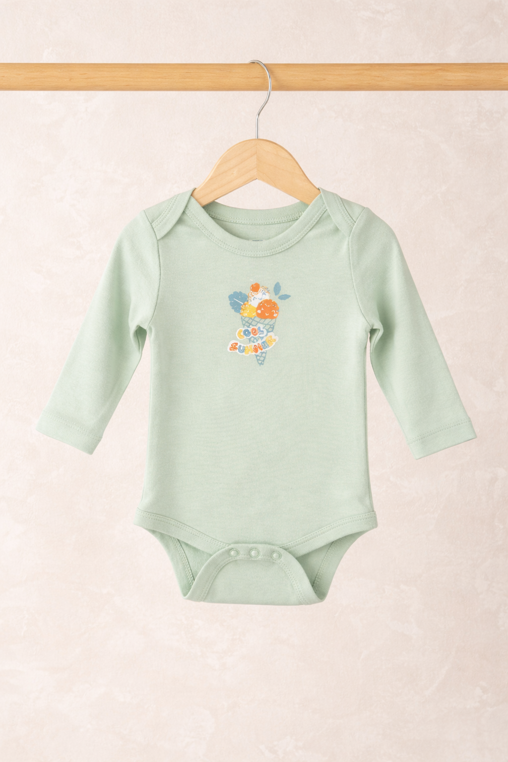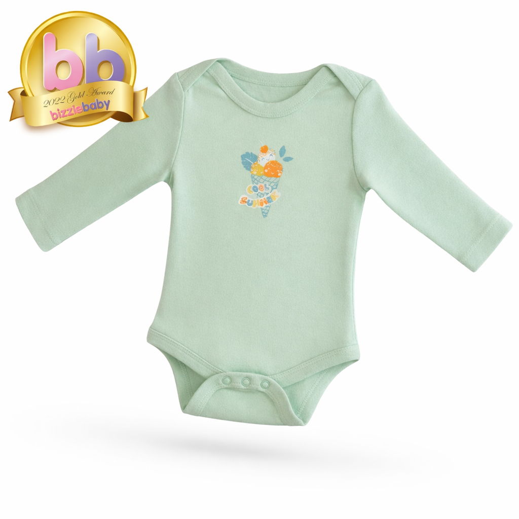 Organic Cotton and Bamboo Long Sleeve Baby Bodysuit – Ice Cream (Mint) | Bebekish
