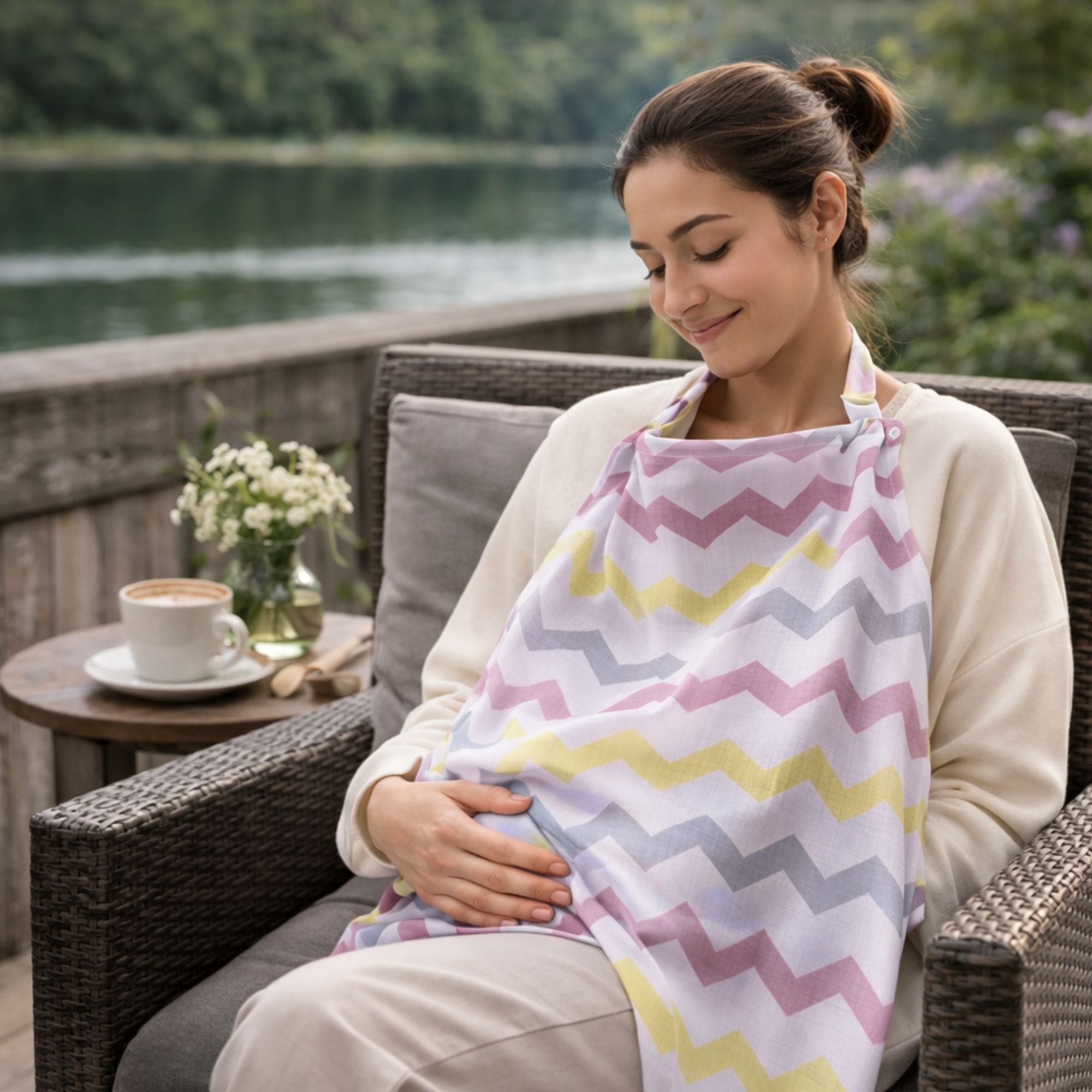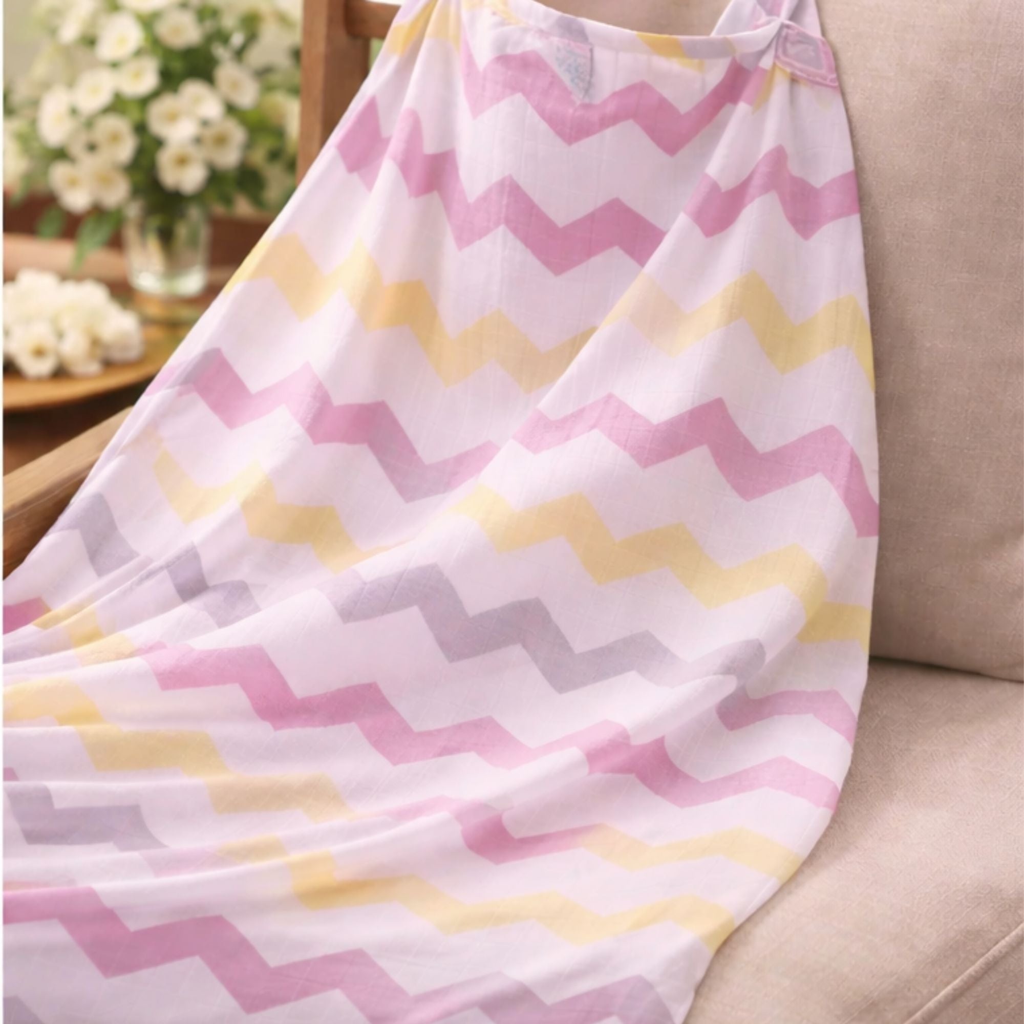 The Bebekish Cool Zaggy Bamboo Breastfeeding Cover is crafted from 100% sustainable bamboo for a breathable, ultra-soft feeding experience.