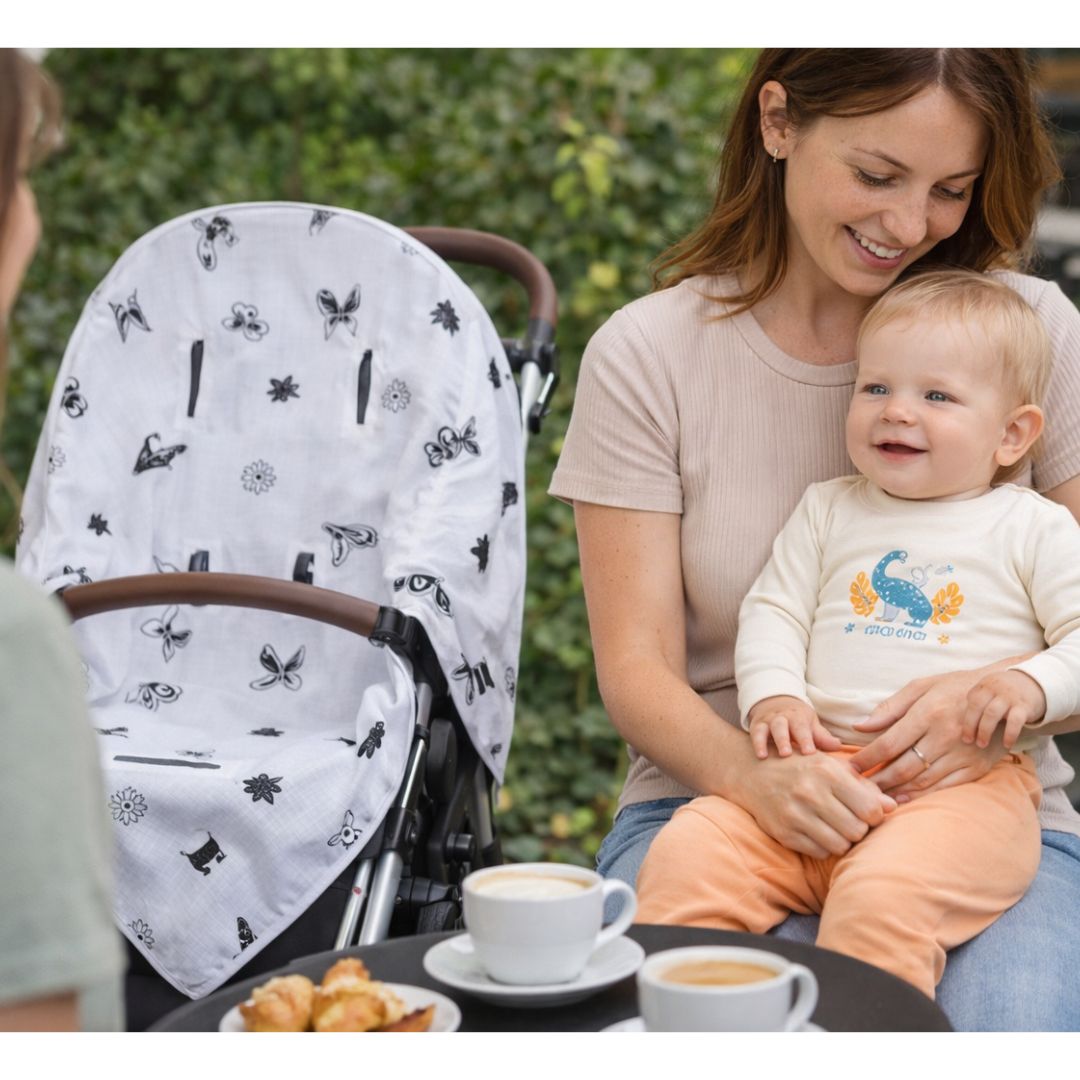 Made from 100% sustainable bamboo muslin, the Butterfly Effect Push Chair Cloth is a super soft, breathable universal pushchair liner designed to keep your baby comfortable while protecting your stroller.